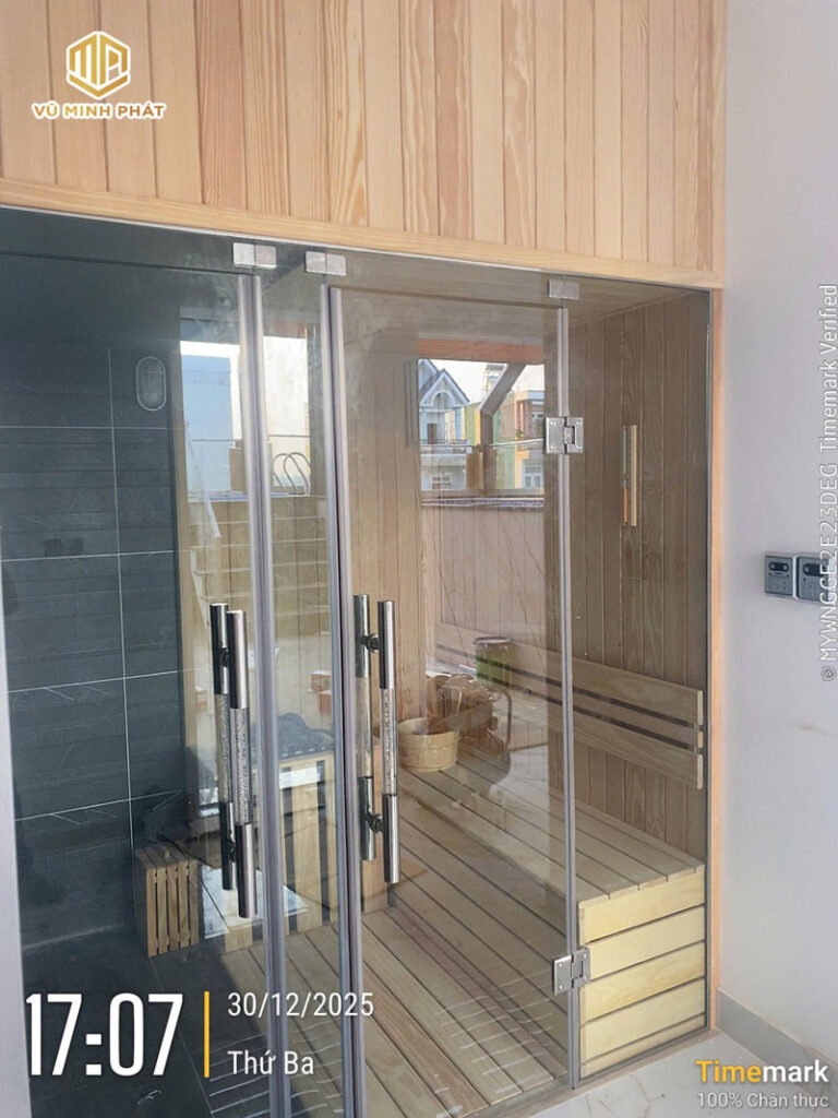 Hình ảnh thức tế sử dụng gỗ thông Mỹ đóng phòng xông hơi :